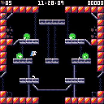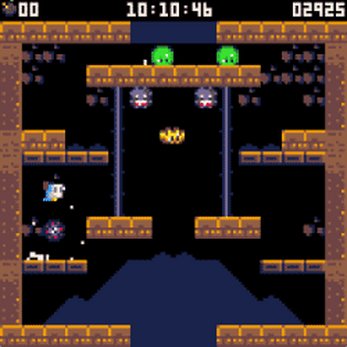 Fun concept, I like the idea of using the pits to loop around to the top of the level and reach other areas. I couldn't really clear level 5 though, all the enemies were dead. I assumed you had to kill the blocks that fall too but I couldn't jump on or bomb them.